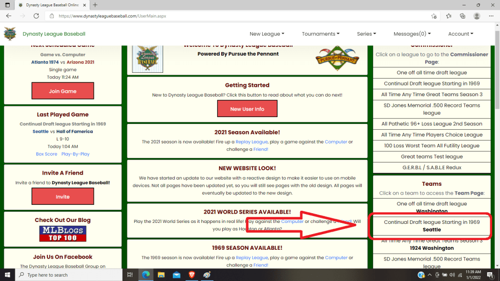 Now that we have a lineup saved you need to tell the system this is the lineup you want in a given situation. This involves a few step. First go to your team’s home page: