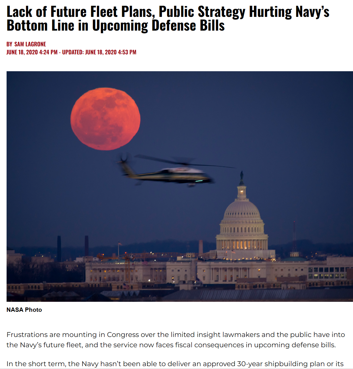 work with Congress to field and maintain the worlds most powerful Navy and