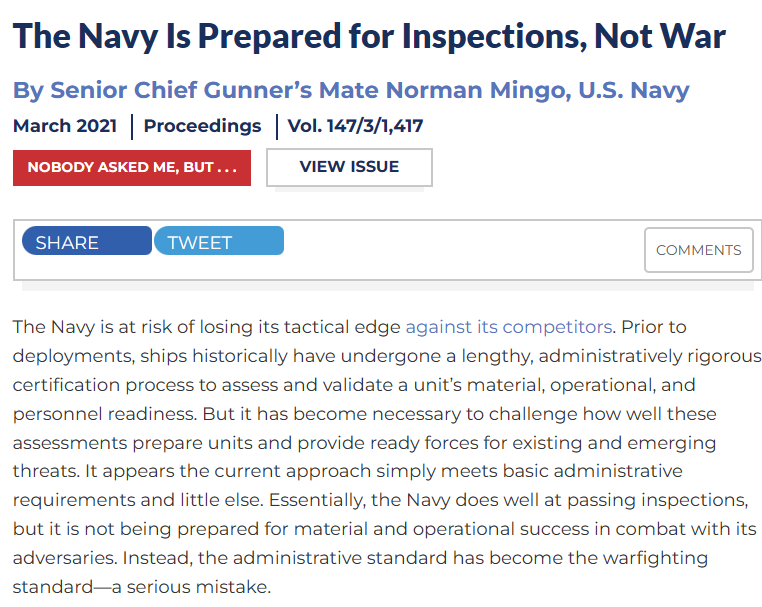 This post represents the views of the author and not those of the Department of Defense, Department of the Navy, or any other government agency.
