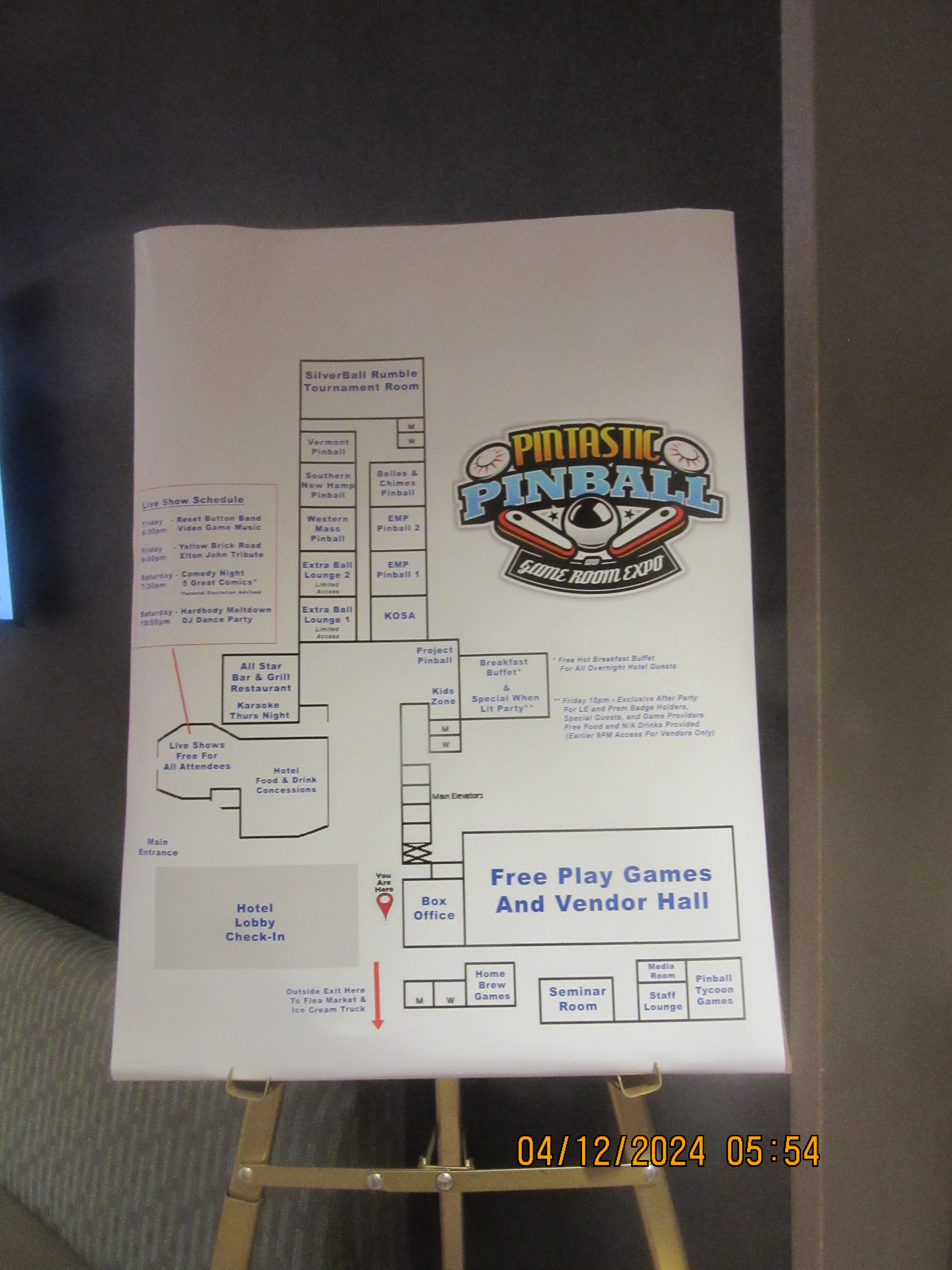 We took some time for dinner and a bit of prayer at a local church that had an adoration chapel (that when I found out about the Iranian attack on Israel but I’ll blog on that later) when we came back it was some serious pinball time, but as I passed the main area I noticed that for the 2nd night there was stand up comedy another first for Pintastic NE. I caught the end of comic Trent Wells set and he gave me an interview afterwards: