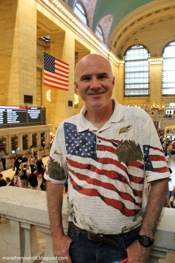 John Ruberry, who regularly blogs at Marathon Pundit, was a bachelor’s degree in advertising from the University of Illinois at Urbana-Champaign. He’s pictured here at Penn Station (correction Grand Central Station) in New York.