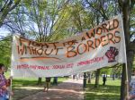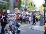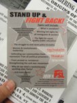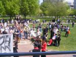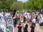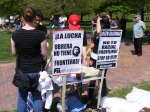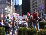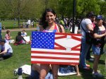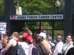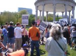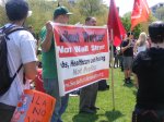 At these rallies—most credible sources said that about 3,500 protesters attended the big ones–often there are people handing out buttons and protest signs. Don’t sell yourself out. I picked out a “thought criminal” button and a “give peace a chance sign.” I support peace under the right conditions and as a Republican living in Illinois, that makes me a thought criminal.